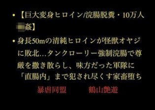 【無料同人漫画】【巨大変身ヒロイン/浣腸脱糞/10万人輪●】身長50mの清純ヒロインが怪獣オヤジに敗北…タンクローリー強●浣腸で尊厳を撒き散らし、味方だった軍隊に「直腸内」まで犯●れ尽くす家畜堕ち